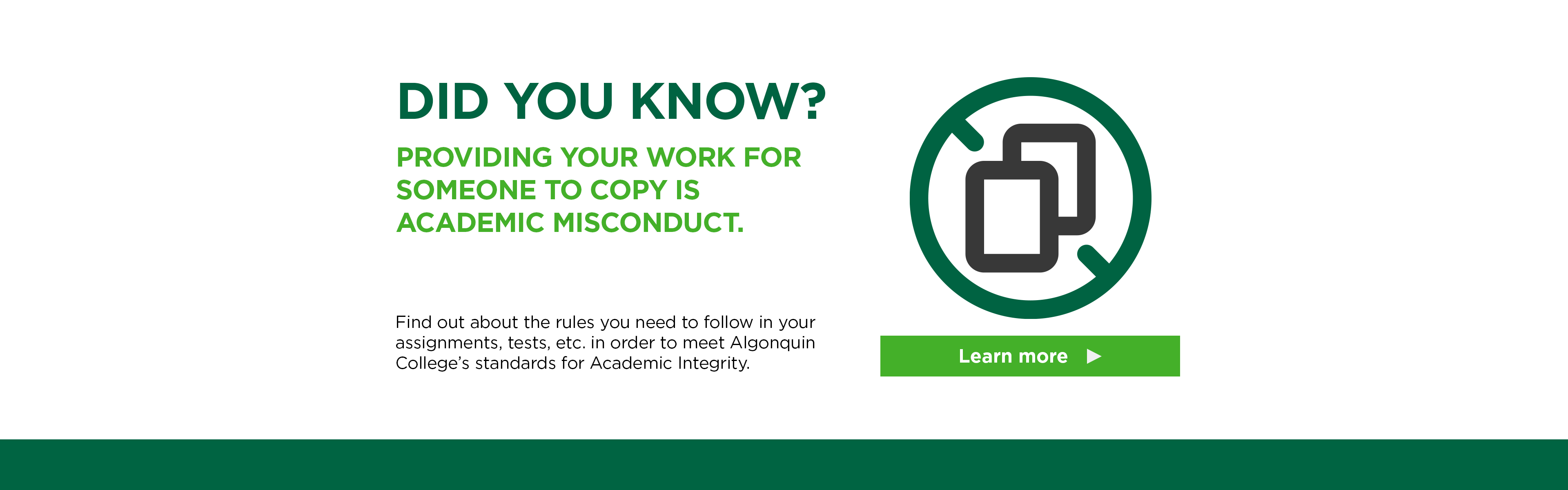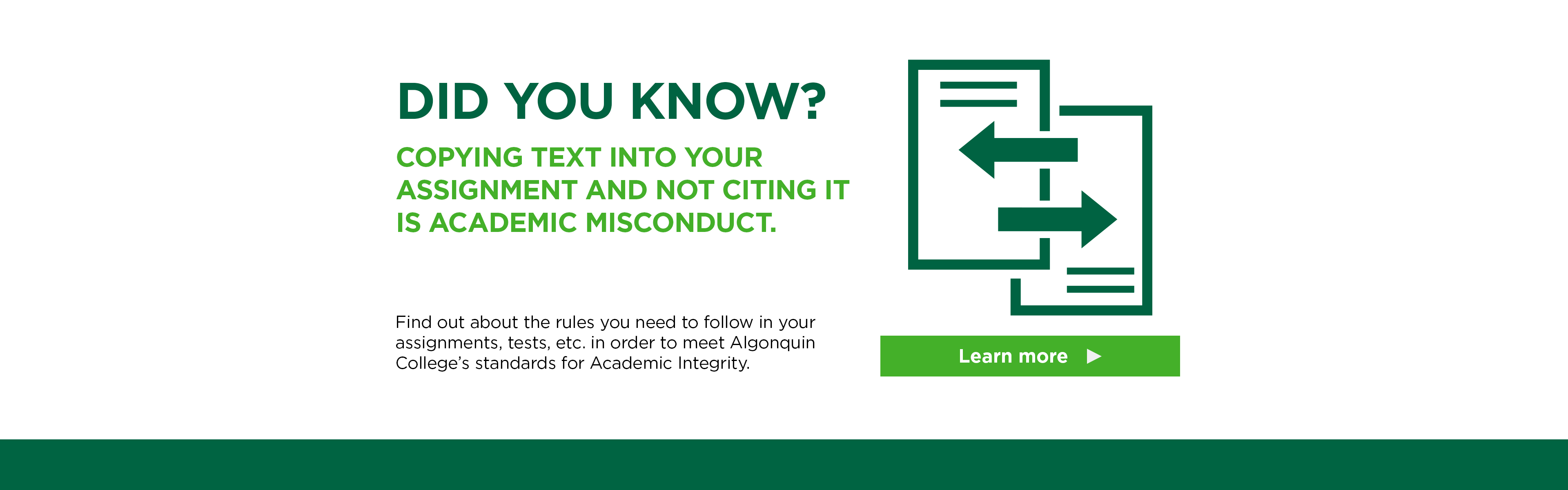 Algonquin College is here to support all members of the College foster a culture of academic integrity. Explore available resources and support options to become informed about the College’s AA48 Academic Integrity policy and process, and what it means to practice academic integrity and avoid misconduct.