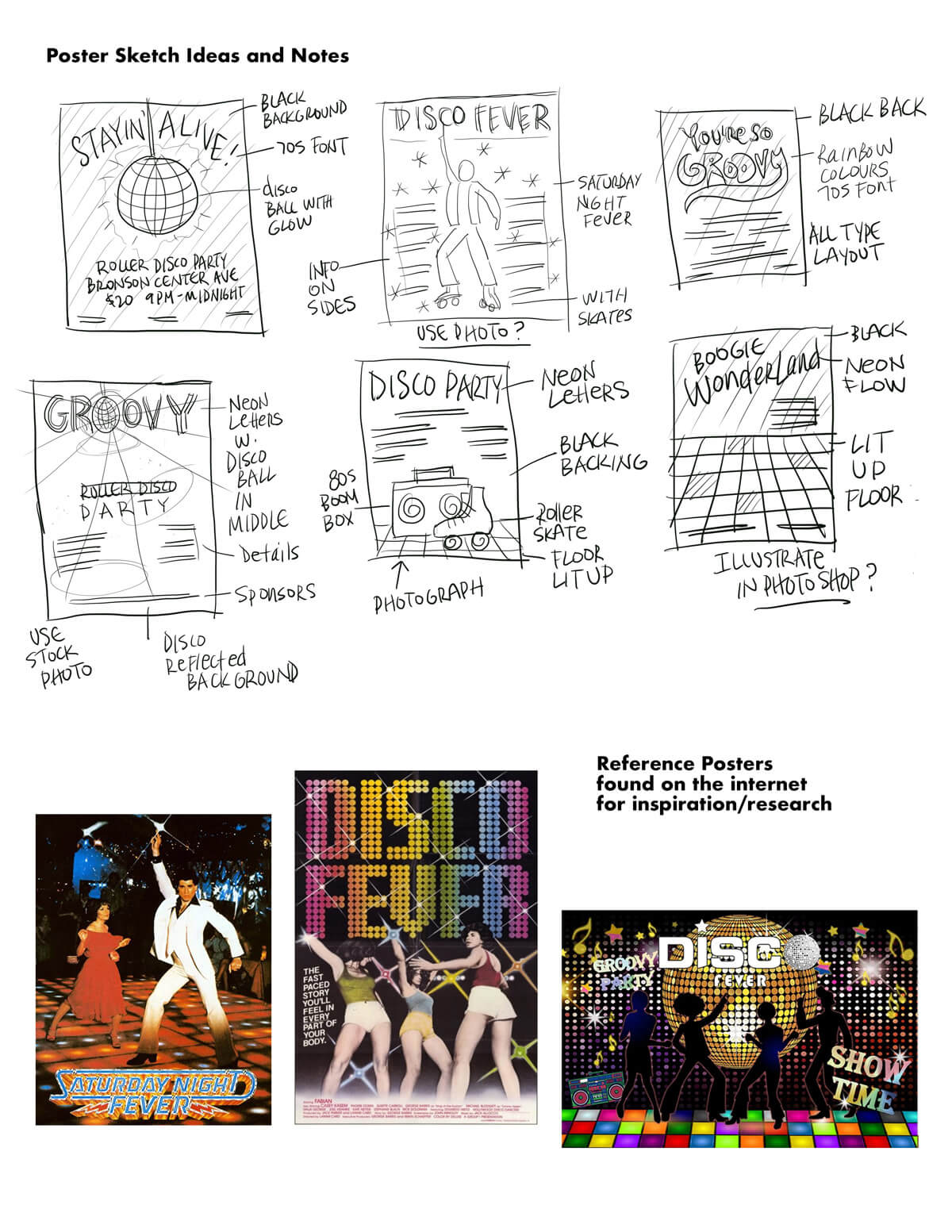 For your portfolio submission, design an 8.5 x 11” event poster for one of the following events: a craft market, a music event, or a sporting event. To complete this task, begin by researching existing event posters to gain insight into design trends and best practices. Next, develop a minimum of 5 possible poster layout sketches, exploring different concepts and ideas. Refine your sketches to create a final poster design that effectively promotes the event and communicates the essential information. Ensure that your final design includes all the necessary details, such as event name, date, time, location, and any relevant additional information.