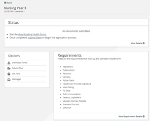 - The Status box will show your current status. If no documents have been submitted, it will identify what the next steps are in the process.