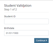 - Enter in your Student ID and Date of Birth or Email Address depending on what is being requested and click the Continue