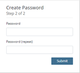 - If the student ID and Birthdate/email address entered are a match, you will be taken to the next step to create a password. Enter the password twice and click the Submit icon.