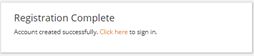 - A pop up will appear identifying if registration was successful. Click on the pop-up at the Click here option which will take you back to the login screen.