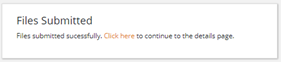 - If the files have submitted successfully you will get a pop-up identifying they were submitted. Click on the click here option to return to the main details page.