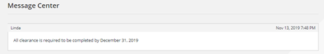 - Messages that have been entered from the College can be reviewed in the messages center. If there is a new Message it will be flagged as new.