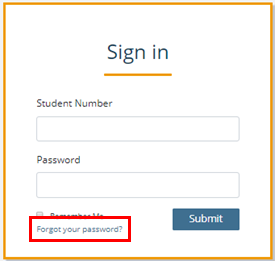 - Enter your email address and student number. An email will be sent to your account with the instructions to reset your password.
