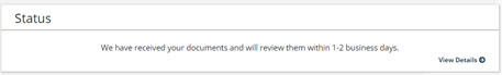 - In the Status box, it will identify that the files have been received and when they will be reviewed. If you wish to review further what was submitted or ask any questions you can click on the View Details option in the bottom right corner.