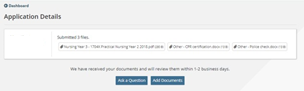 - From the view details tab, you can submit additional documents if you realize you have forgotten to send one in your original transfer or ask a question to be answered by the nurse by clicking on one of those option icons.