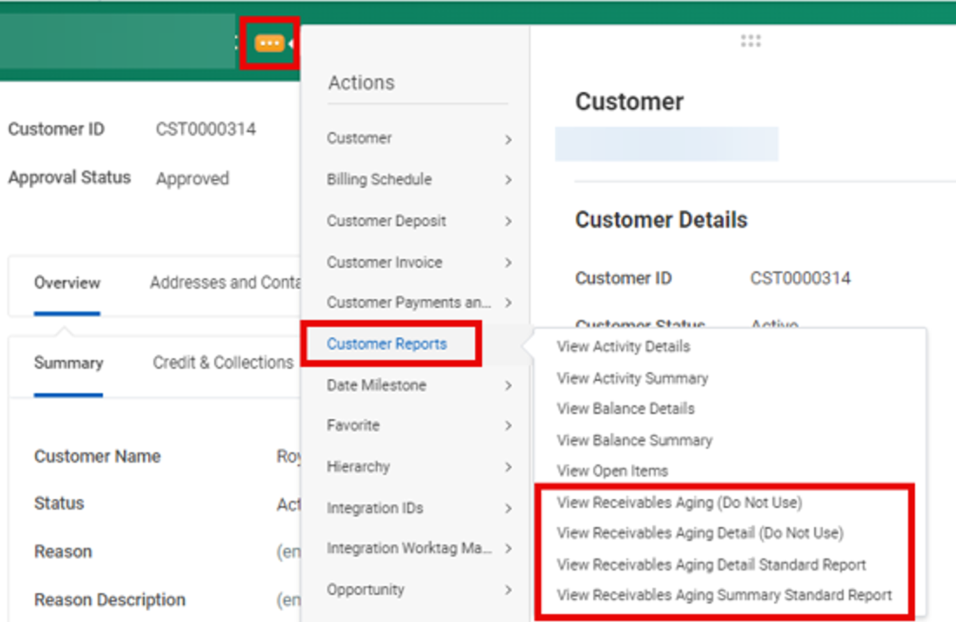 - From Customer Profile > Invoices and Payments tab > Related Reports subtab: